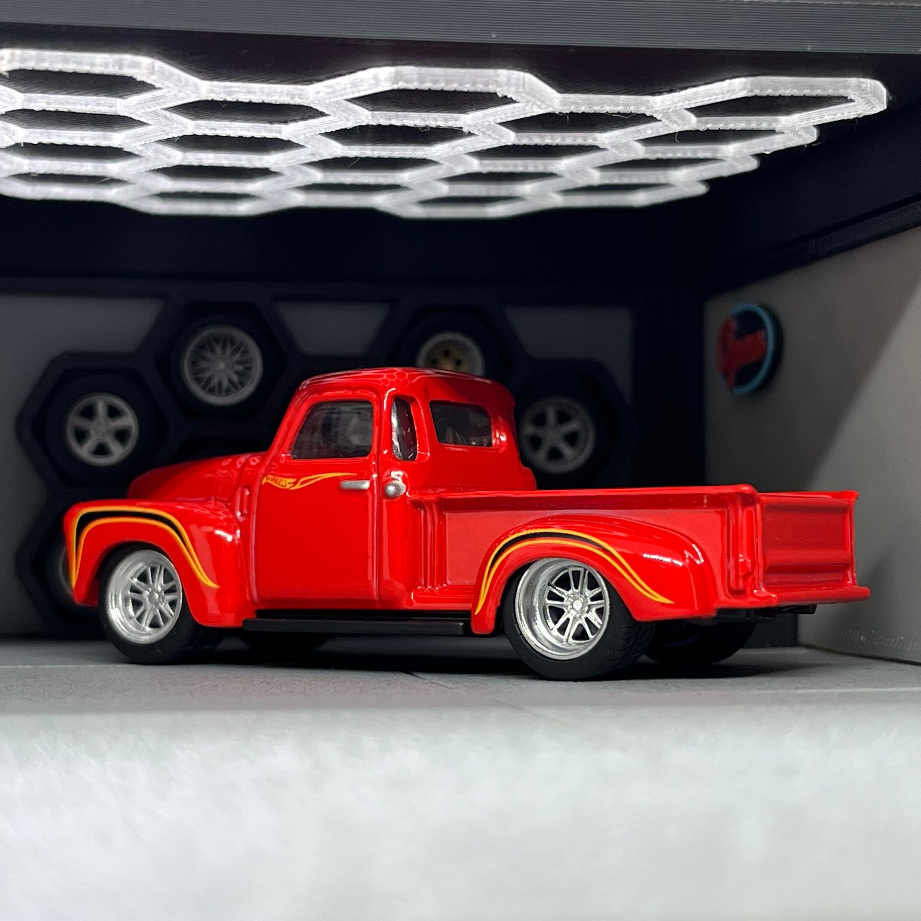 ギリギリまで大きく太くをコンセプトに製作したため、ホットウィールのピックアップトラックやマッスルカーなどのタイヤ外径12.4mm×幅7mmを履いた車両もしくは同等サイズが履けるタイヤハウスの大きな車種のみ履く事ができます。