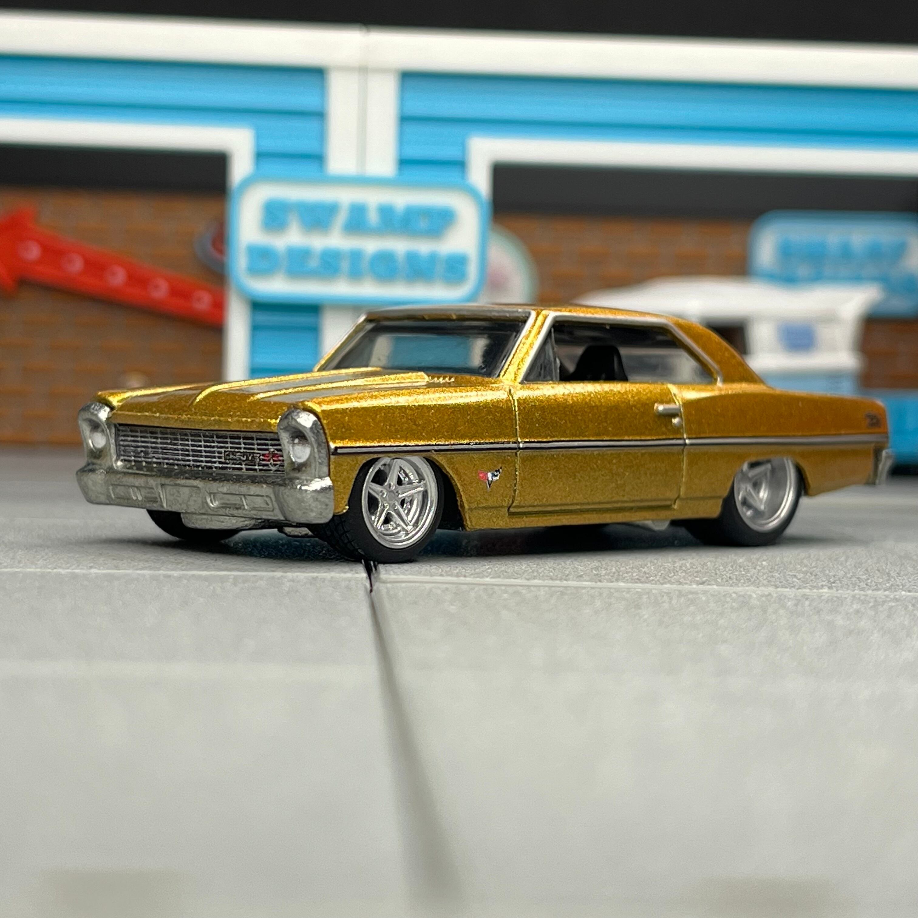 前後で異なるサイズを採用する事によりフェンダーアーチにマッチし、ホットウィールらしさを保ちつつカスタムすることが可能です。
