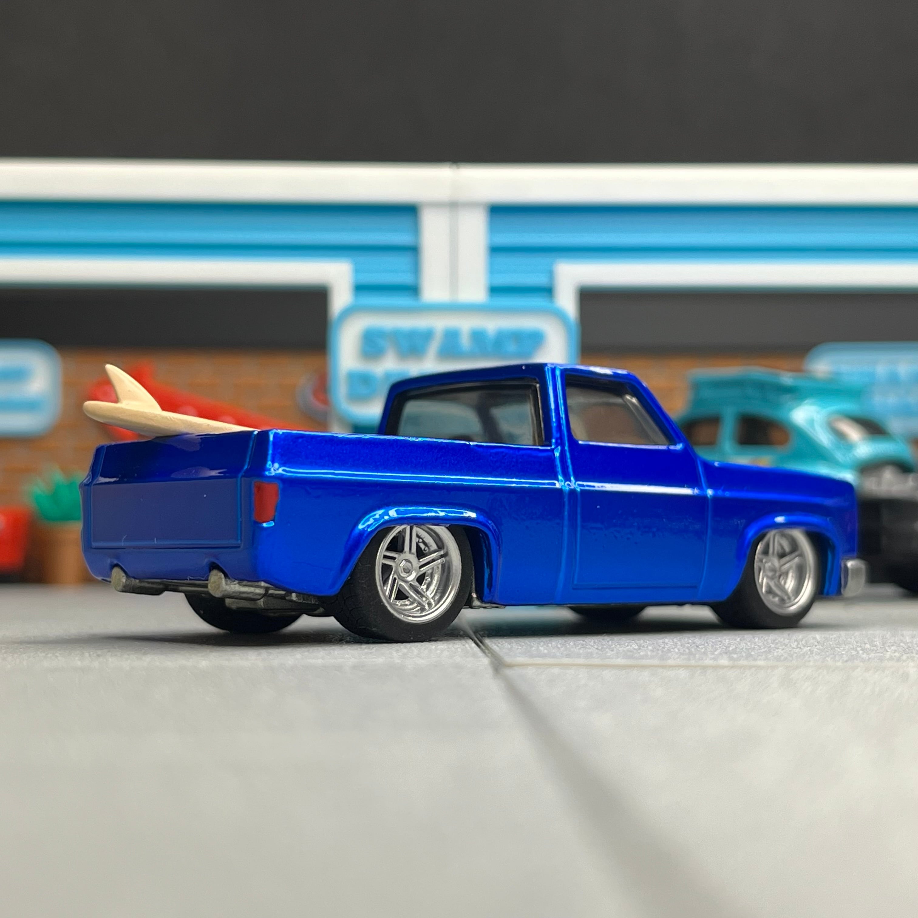 ギリギリまで大きく太くをコンセプトに製作したため、ホットウィールのピックアップトラックやマッスルカーなどのタイヤ外径12.4mm×幅7mmを履いた車両もしくは同等サイズが履けるタイヤハウス容量の大きい車種のみ履く事ができます。