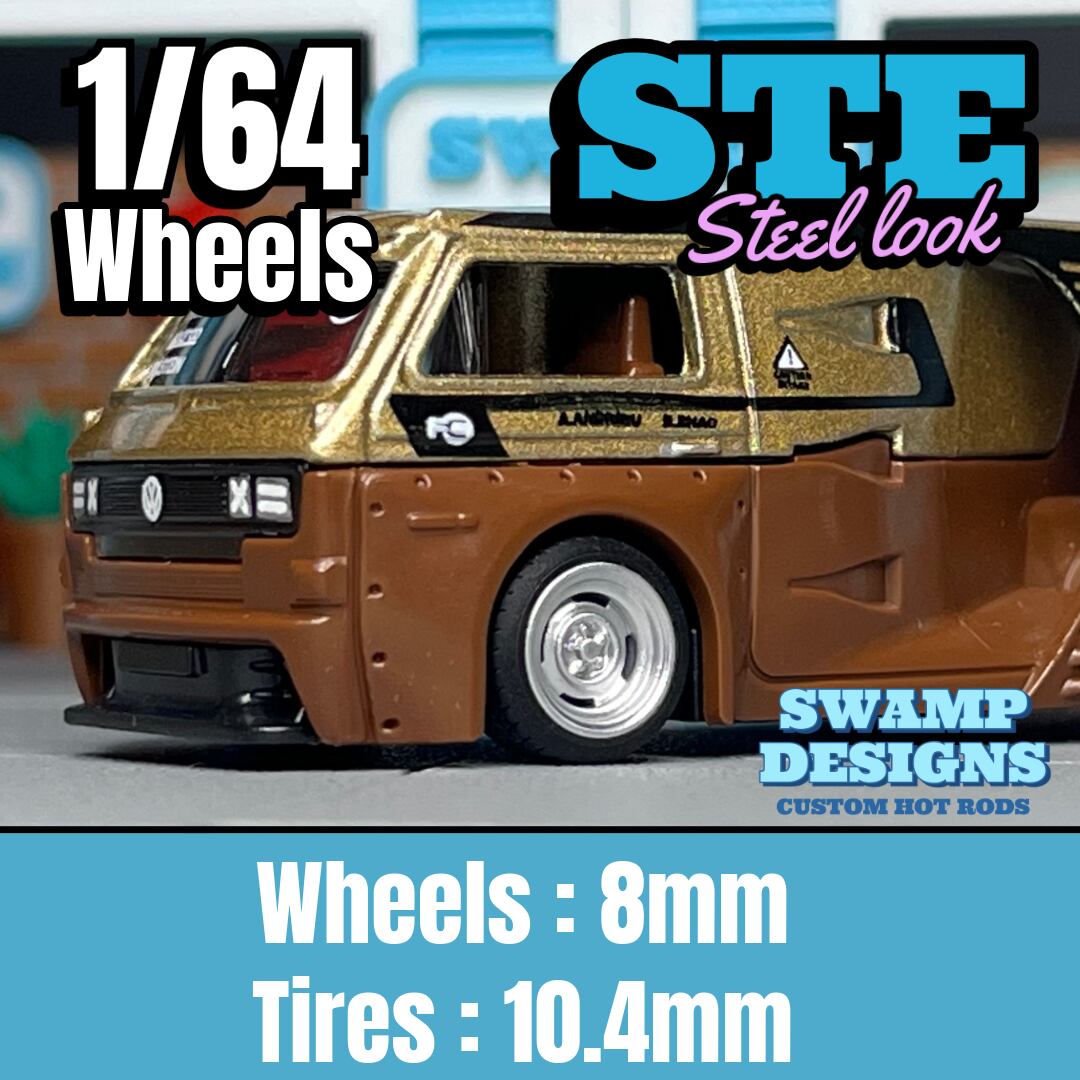 【STE】1/64ホイール 未塗装 スチールルック 深リム 鉄チン 1/64カスタムホイール アメ車 8mm 10.4mm 1/64 ホイール SwampDesigns