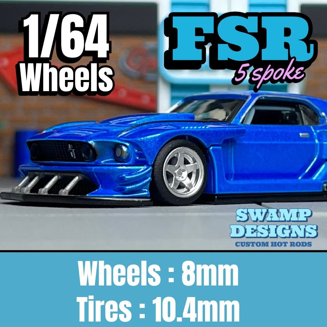 【FSR】1/64ホイール 未塗装 5スポーク 1/64カスタムホイール アメ車 8mm 10.4mm 1/64 ホイール SwampDesigns
