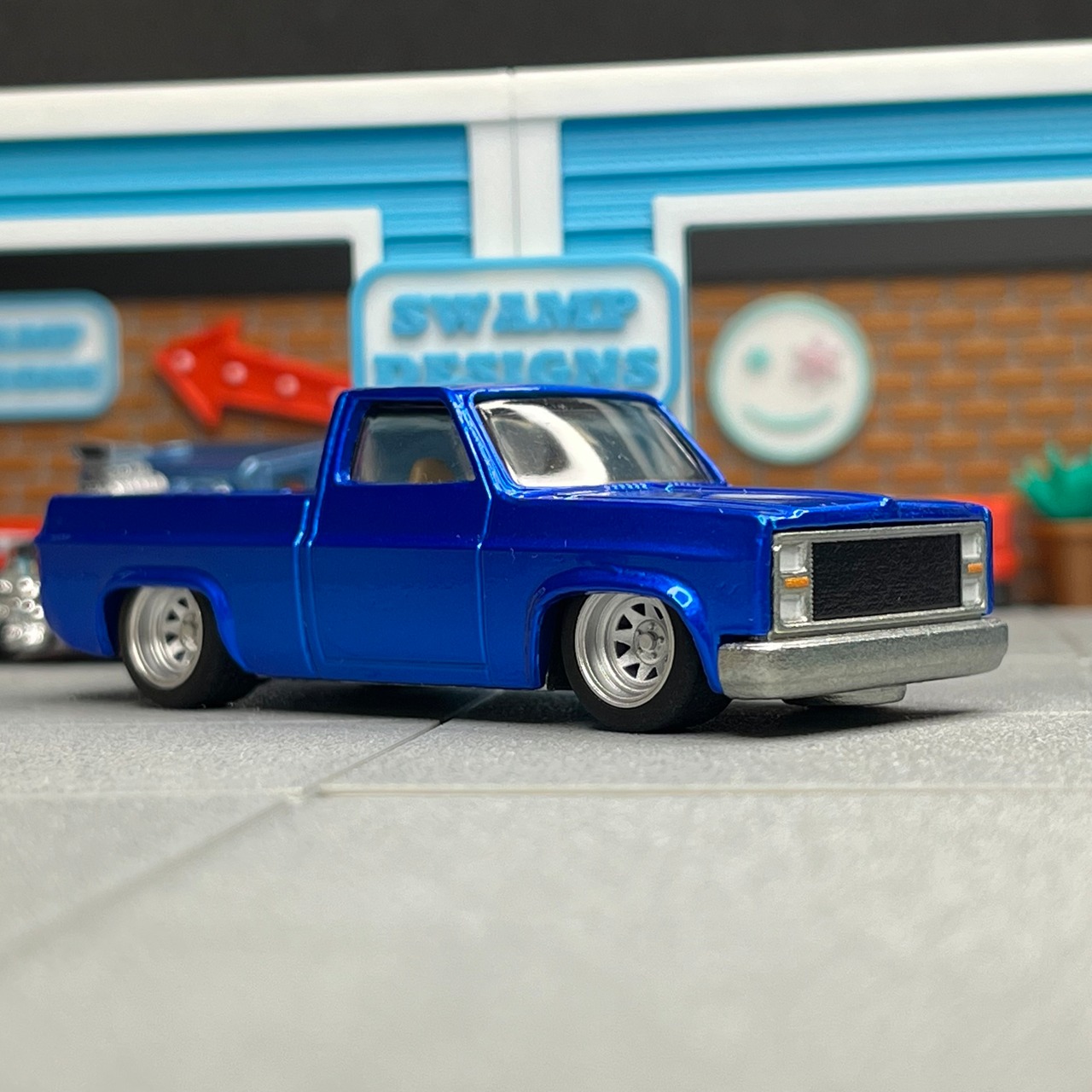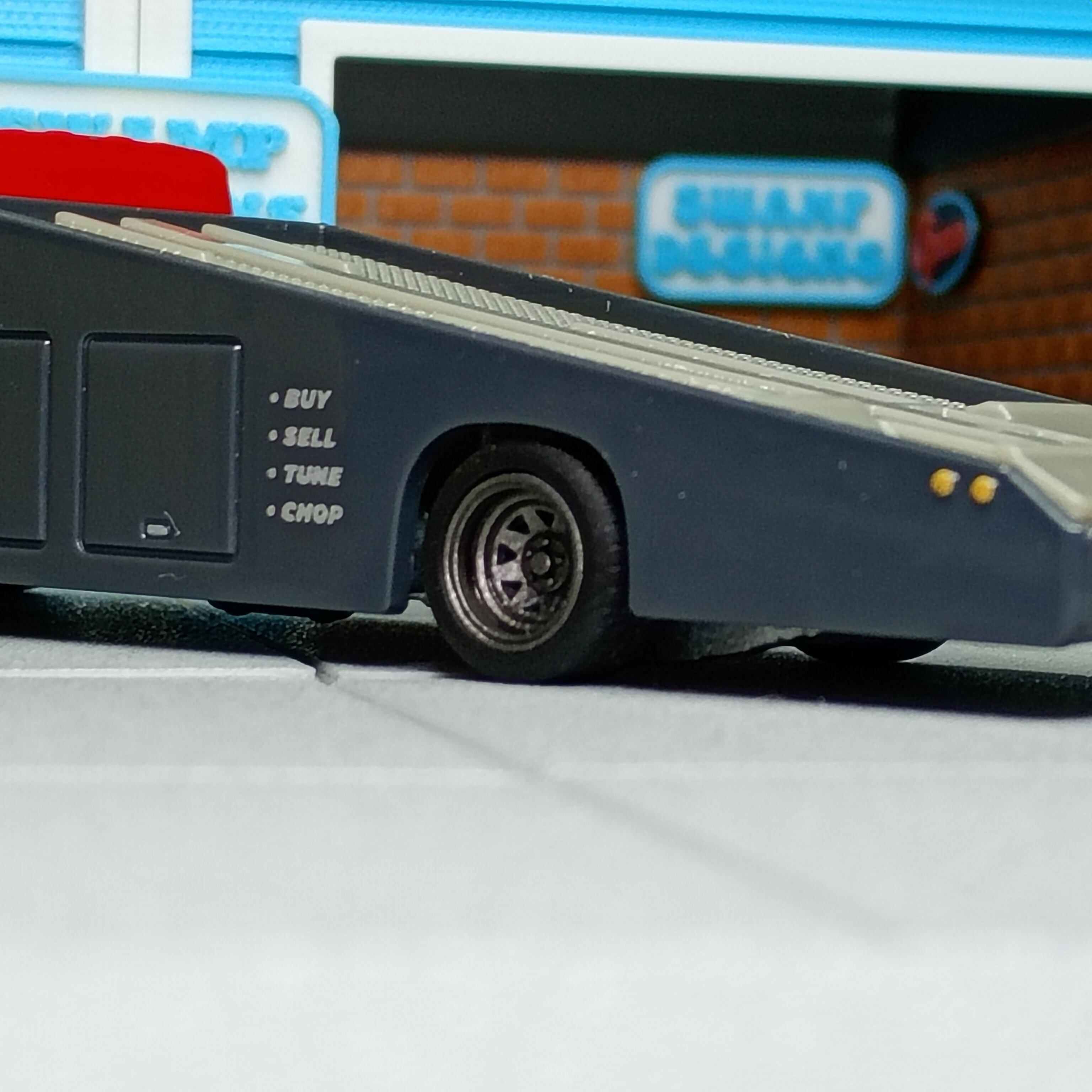 ギリギリまで大きく太くをコンセプトに製作したため、ホットウィールのピックアップトラックやマッスルカーなどのタイヤ外径12.4mm×幅7mmを履いた車両もしくは同等サイズが履けるタイヤハウス容量の大きい車種のみ履く事ができます。
