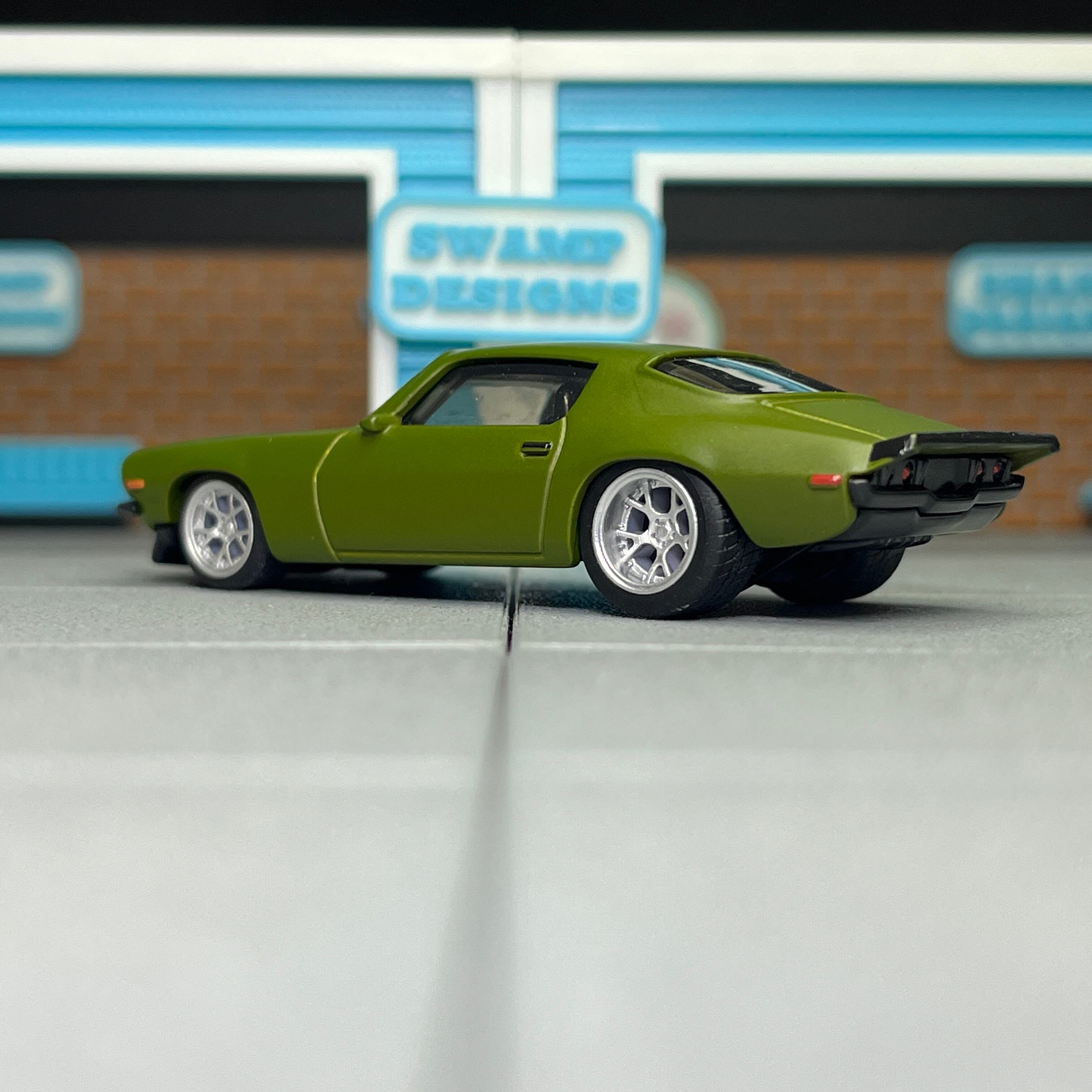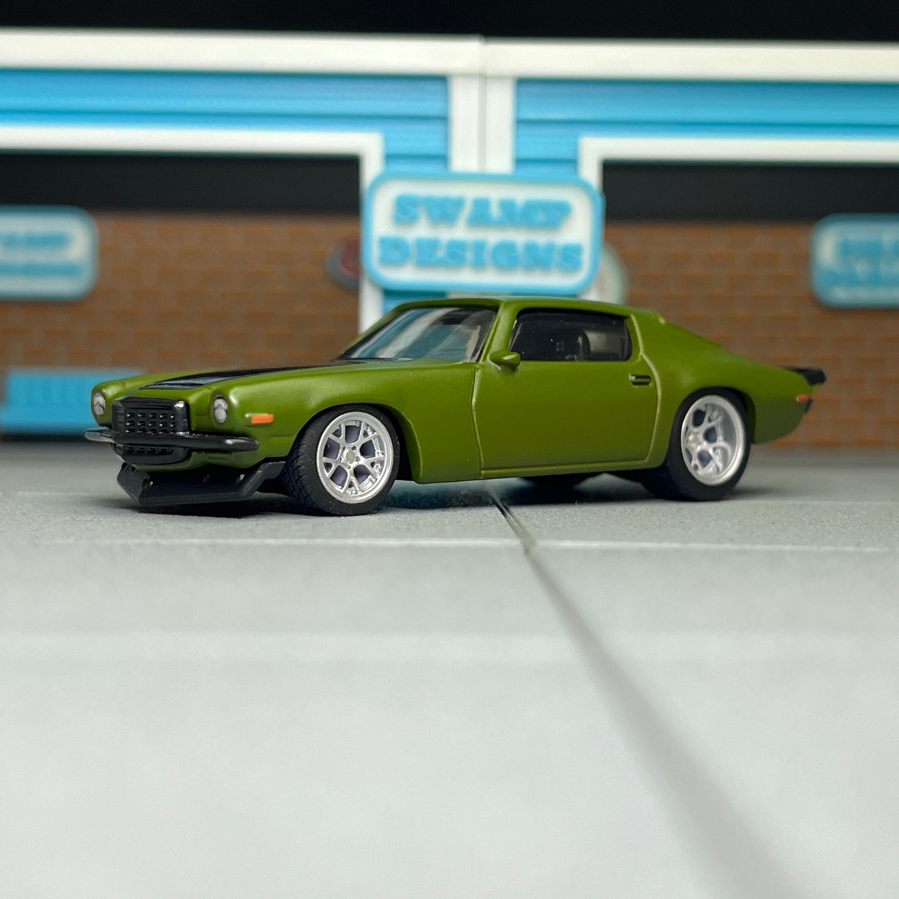 前後で異なるサイズを採用する事によりフェンダーアーチにマッチし、ホットウィールらしさを生かしつつカスタムするために制作しました。